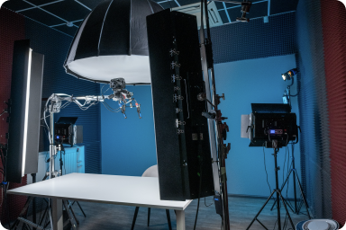 Выберем для съёмки одну или несколько наших профессиональных студий, организуем выезд на площадку заказчика или подберём другую удобную локацию
